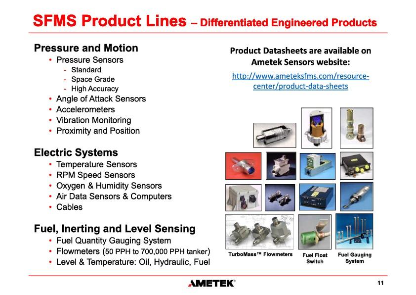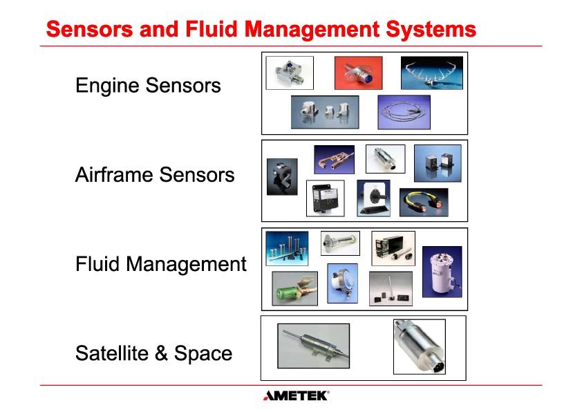 Ametek, Genel Olarak Kara Hava Ve Deniz Platformları İçin İtki Ekipmanları,Motor, Güç Dağıtım Ünitesi Ve Sensör Üretimi Yapmaktadır.